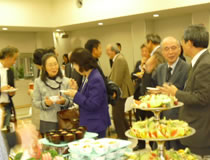 そして4時半からは食堂1で懇親会を行いました。この機会にお誘い合わせての出席もあり、会場のあちこちでたのしい笑顔、はじける笑い声のひとときでした。台風にも関わらず、北は仙台、南は広島からたくさんの同窓生にご参加いただきありがとうございました