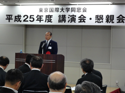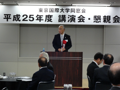 倉田信靖理事長・総長の講演会では、4年生大学は国立・私立を含め、約800ございますが、リクルート調査により『国際関係・国際事情をよく理解できる大学』で本学はランク7位となりました。東京大学がランク3位、青山学院大学がランク8位となっております。日本社会は『誇れる母校』が大切であると思います。在学生にとってもランク7位であったことは、『誇れる母校』となるのではないでしょうか。これから先、皆様の母校が更に社会の信頼を得て発展し、後輩が誇りを持ってこの大学の出身だと言えるような大学へ育って頂きたいと存じます。改めてお願いと決意と方向性を申し上げさせて頂きましたとのご講演をして下さいました。