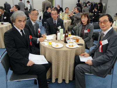 去る1月11日(土)ステーションコンファレンス池袋において、「2014年 東京国際大学霞会 賀詞交歓会」が開催されました。倉田理事長・総長、田尻学長にご挨拶を頂き、霞賞授与式が行われました。乾杯のご発声を11期・商学部卒 山口和之様にお願いし、乾杯の後は歓談が始まりました。歓談中は、総長室・津田周一統括部長、入学センター進路支援部・山内孝一統括部長、教務部・福井康紀統括部長より大学内についてのお話をお伺いしたり、名刺交換をするなど交流を深められておりました。会場の雰囲気も大いに盛り上がり、高橋宏副学長よりお言葉を頂戴し、歌斉唱後に閉会となりました。
