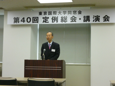 続いて行われた資格審査では、同窓会会則第29条「総会は正会員の100分の1以上を定足数とする。但し書面によって委任のあった場合は、出席とみなす」に準じ、正会員数49,145名に対し総会出席者及び委任状は合わせて647名であり定足数491名を満たし、総会は成立したことが報告されました。