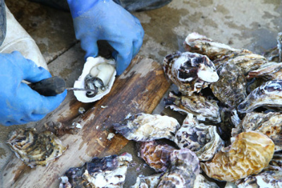 小松君の牡蠣は他の養殖業者と違い温熱駆除をしムール貝などを駆除するなど手間隙を掛けて養殖をしているので粒が大きく、甘い牡蠣です。彼は牡蠣は家族の幸せと食べてくださる方たちの幸せを作る種と話し、最終目標はブランド化を目指しております。