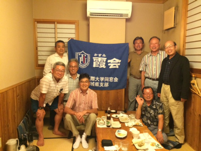 当日は朝から曇天の中、ゴルフ愛好家6人がプレー、吉野宏(商7期)氏が優勝、夕刻からの暑気払いは8人の参加となった。硬式野球部リーグ戦の応援継続と11月の秋霞祭時の第一回社員総会への参加を案内し散会した。