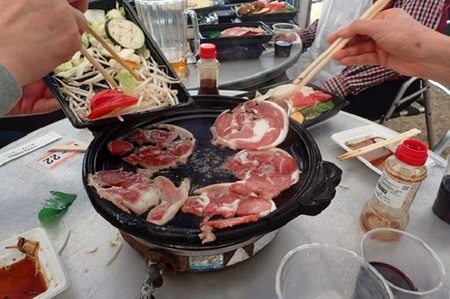 牛久シャトーは、ワインの酒蔵、地ビールと周りを取り囲む桜の名所として地元では結構有名なところです。当日は、万席状態でしたが、参加者全員うまいワインと地ビールそしてラム肉を思う存分堪能致しました。