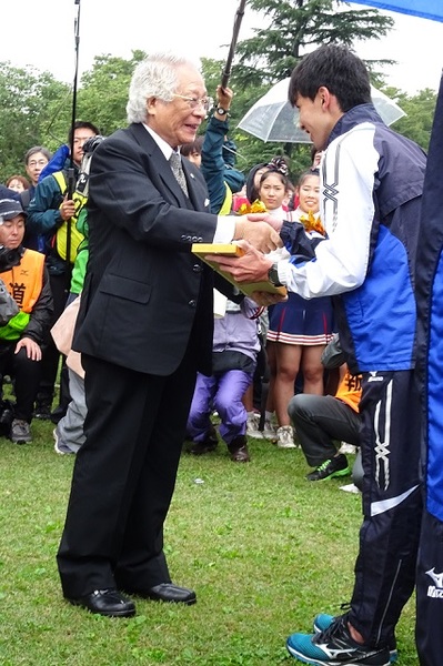 倉田理事長・総長より「襷」授与