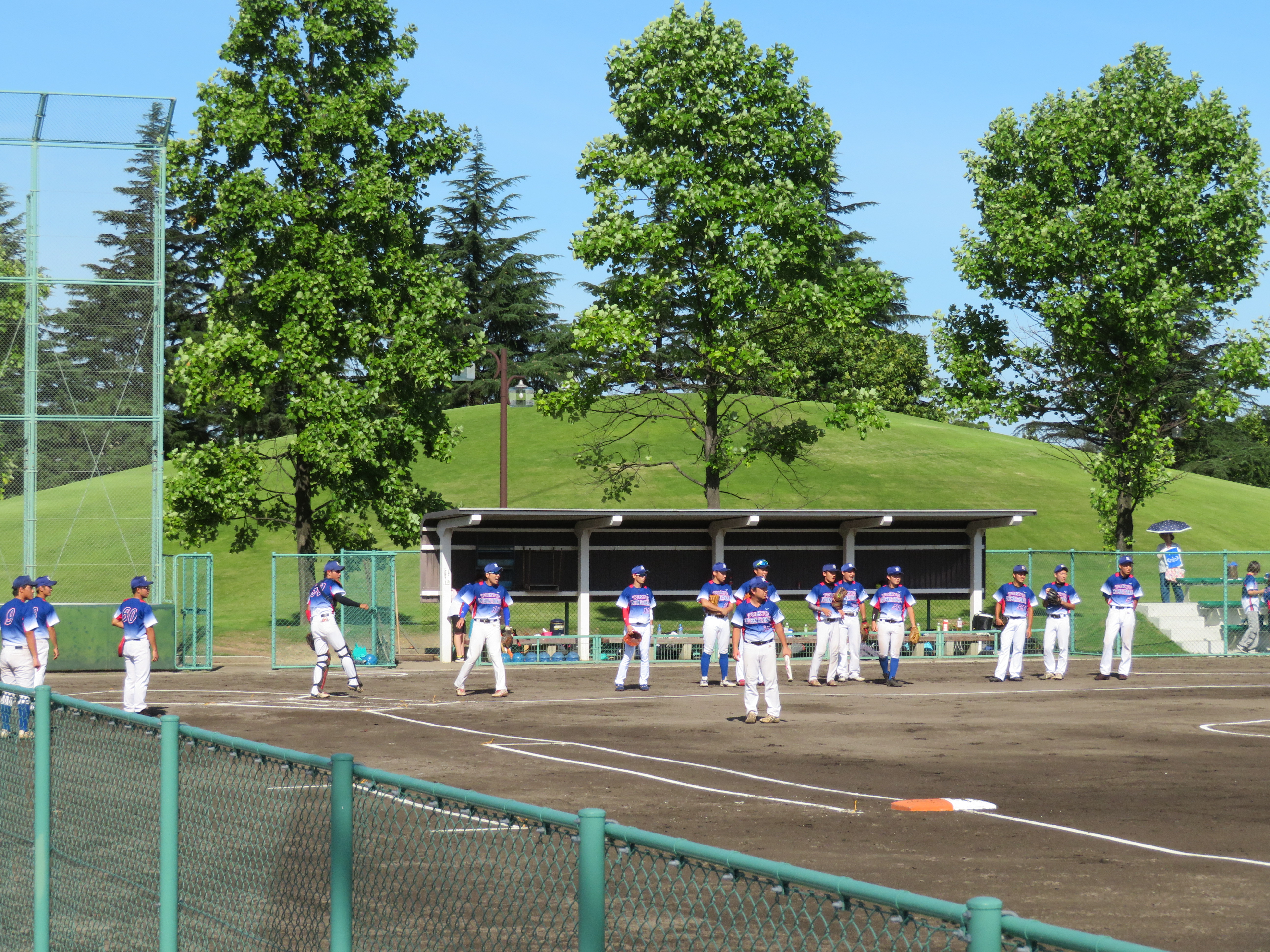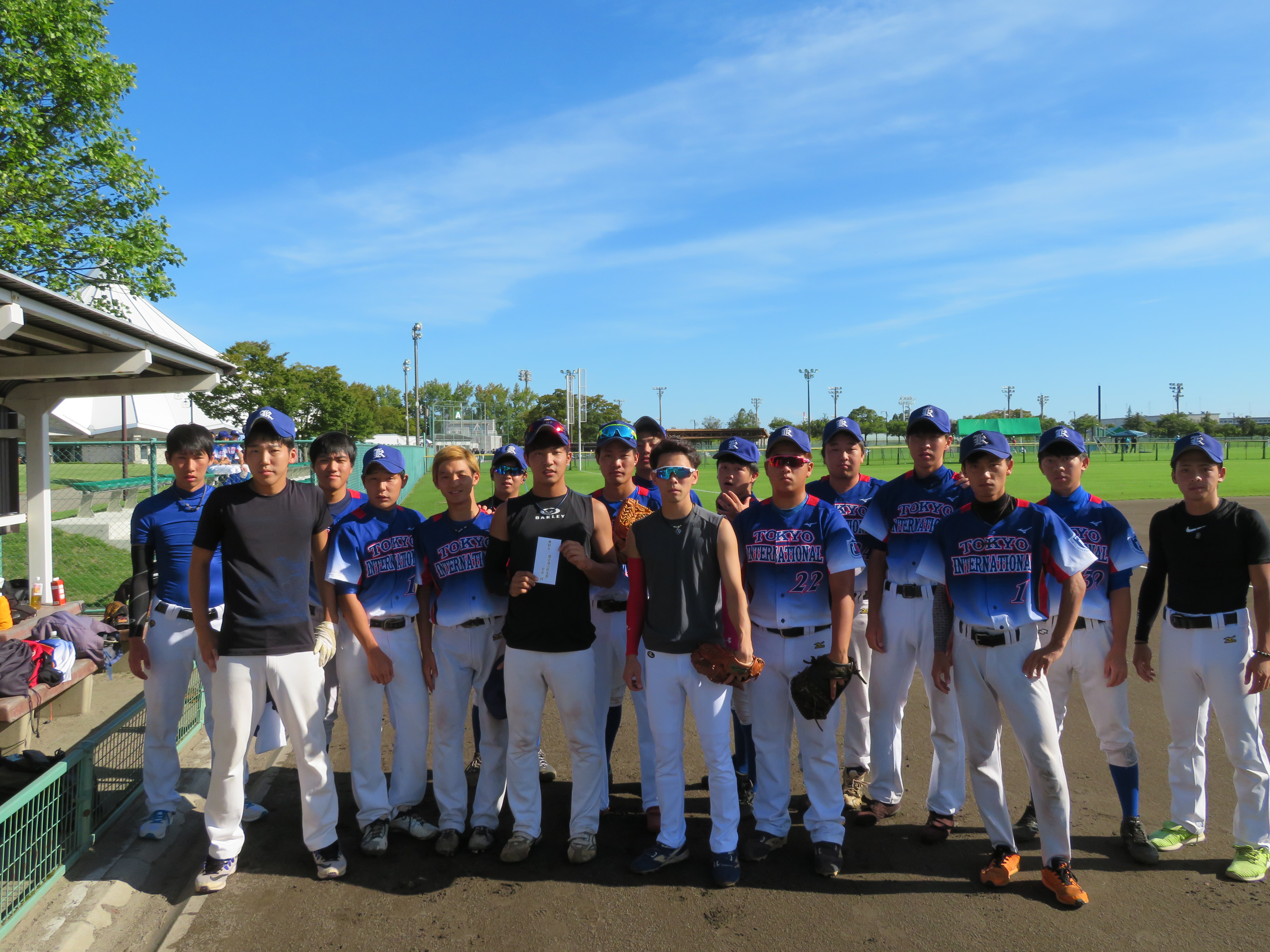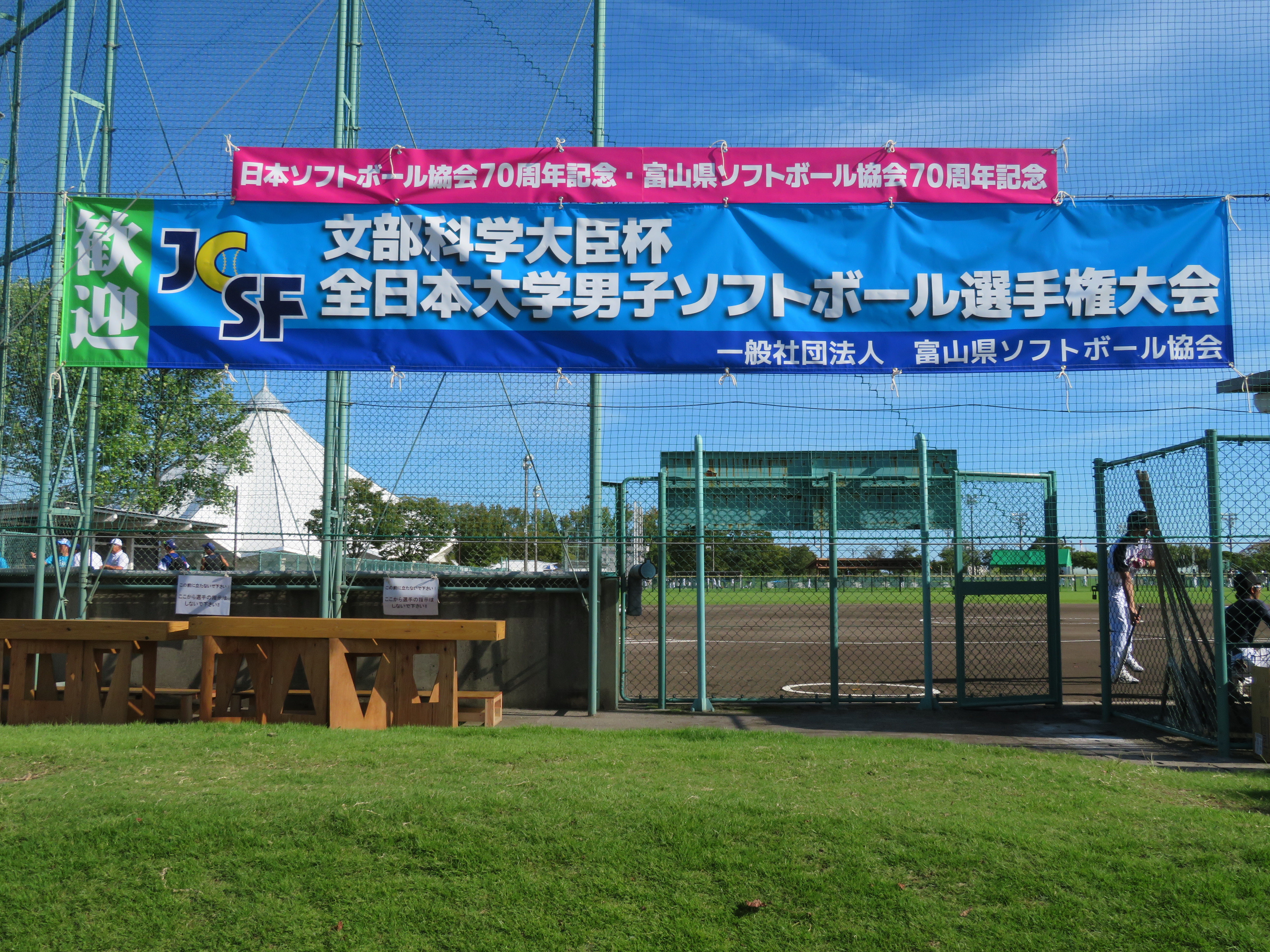 男子ソフトボールのインカレが富山県で開催されました。初出場との事で 初戦突破を期待し、応援に行って来ました。 屋外スポーツ日和?で9月にも関わらず、真夏並みでお天気に恵まれました。 練習前に、富山県支部有志一同からの激励金を渡しました。 部員の多さにビックリ!!選手が応援席に十数名、女子マネージャーも数名。 応援席には関係者と思われる方々もおられました。 試合結果は残念でしたが、次回に期待しましょう。