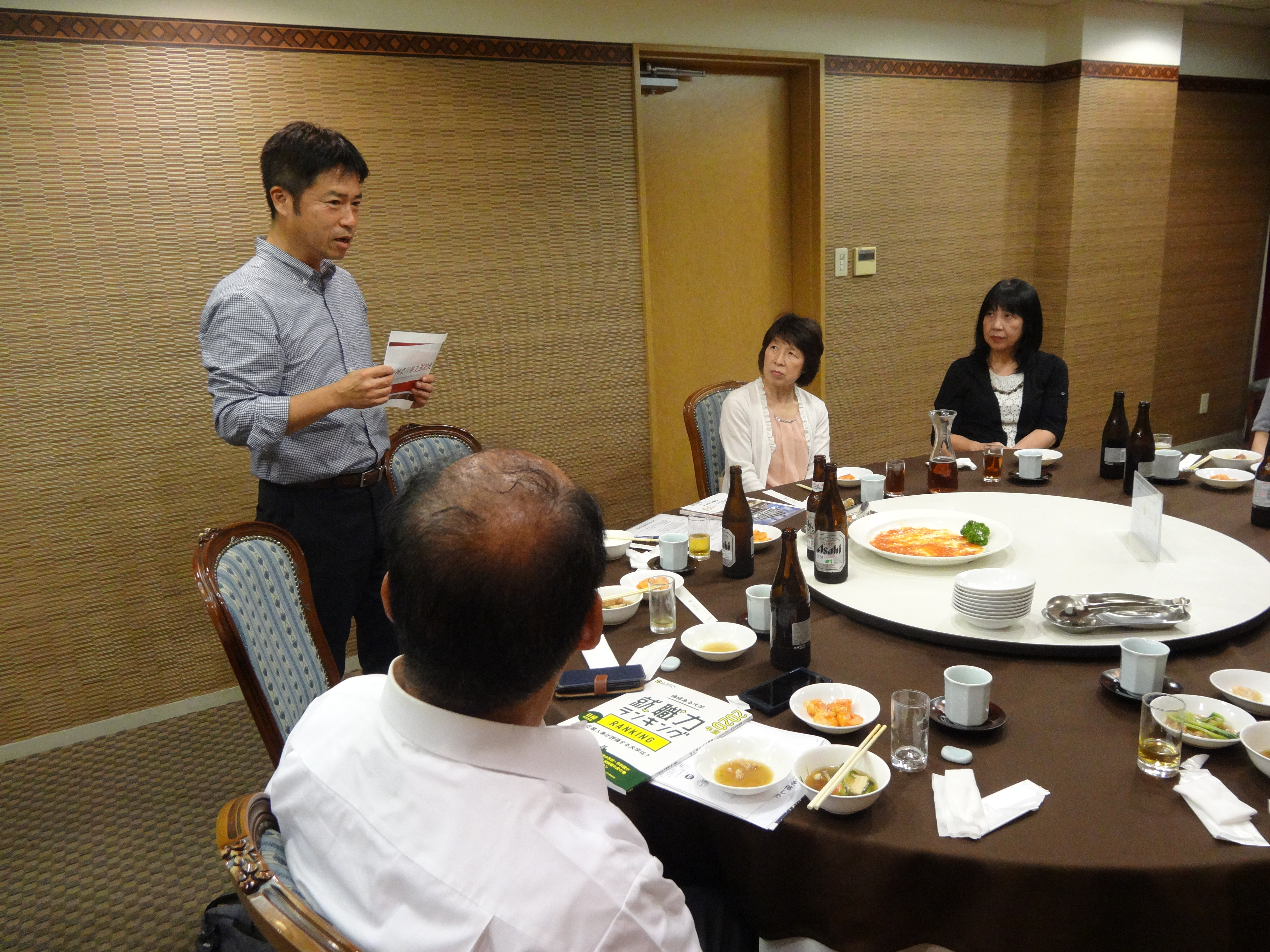 冒頭、吉田支部長より「2023年開校予定の池袋校への期待」「強化クラブの現況」「Eトラック入学の概要」「大学ランキングの当大学の評価」のお話がありました。当大学の将来性・関東地域NO1の大学として存続できるのか~熱い論議が交わされました。今回の出席者は9名でしたが内4名が女性陣と今回も女性パワー炸裂で~天野眞弓(2期)相談役の乾杯(発声)で始まりました。出席者の現況報告・最近のエピソード・ビジネス情報等多いに盛り上がりました。最後に、11月3日の全国大学駅伝大会への応援、2020箱根駅伝応援への静岡県支部として応援隊を派遣することを決議し、「後輩の頑張りに我々同窓生も今以上に奮起していくことを誓い」三本締めにて、散会となりました。